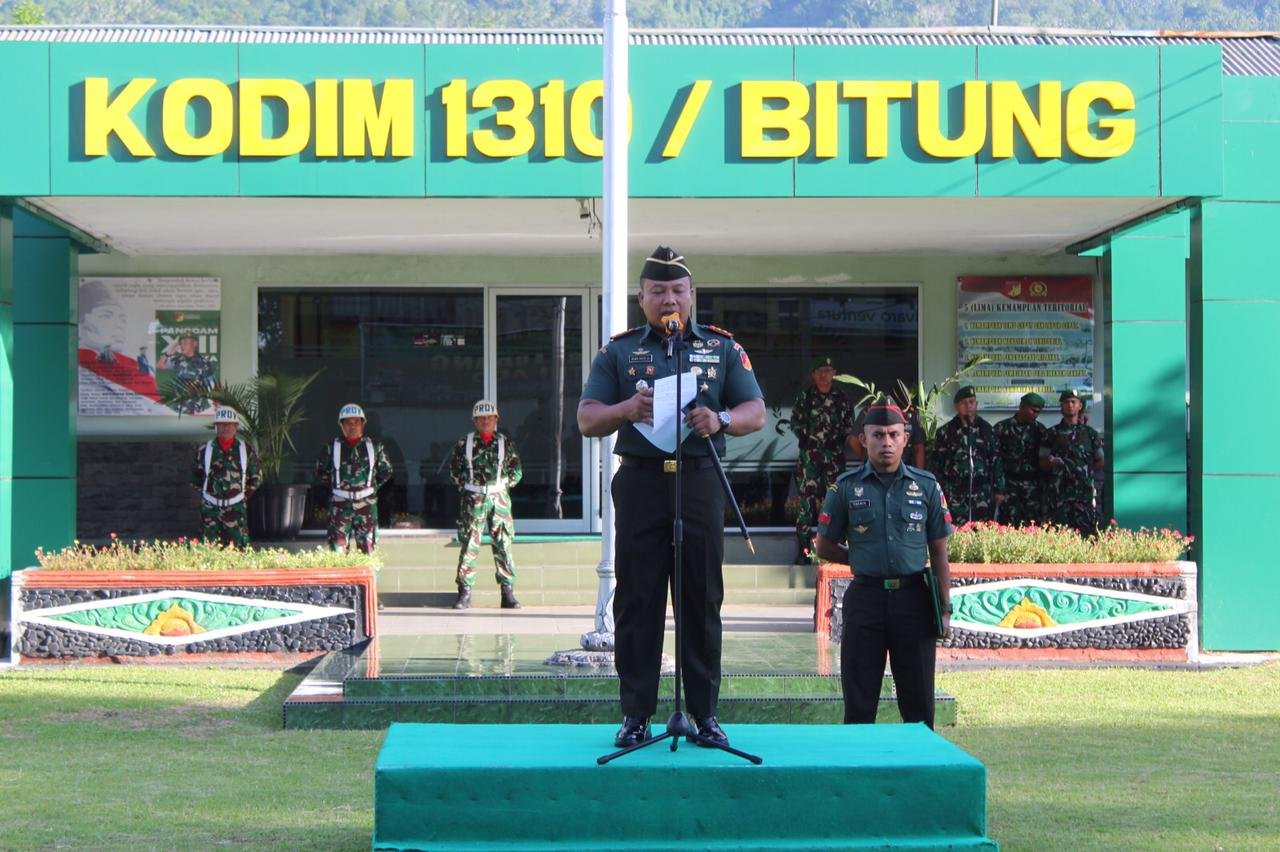 Bitung – Kodim 1310/Bitung menggelar upacara bendera tanggal 17 sebagai wujud penghormatan terhadap nilai-nilai perjuangan bangsa sekaligus sarana pembinaan disiplin dan jiwa nasionalisme prajurit.