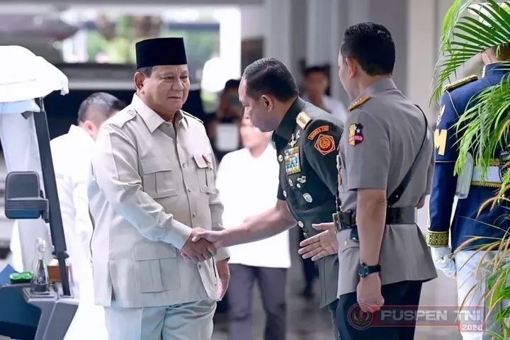 Jakarta – Panglima TNI Jenderal TNI Agus Subiyanto bersama Menteri Pertahanan RI Sjafrie Sjamsoeddin serta Kepala Staf TNI Angkatan Darat Jenderal TNI Maruli Simanjuntak, Kepala Staf TNI Angkatan Laut Laksamana TNI Muhammad Ali, dan Kepala Staf TNI Angkatan Udara Marsekal TNI Mohamad Tonny Harjono menghadiri Rapat Pimpinan (Rapim) TNI–Polri yang dipimpin langsung oleh Presiden Republik Indonesia Prabowo Subianto di Istana Negara, Jakarta Pusat, Senin (9/2/2026).
